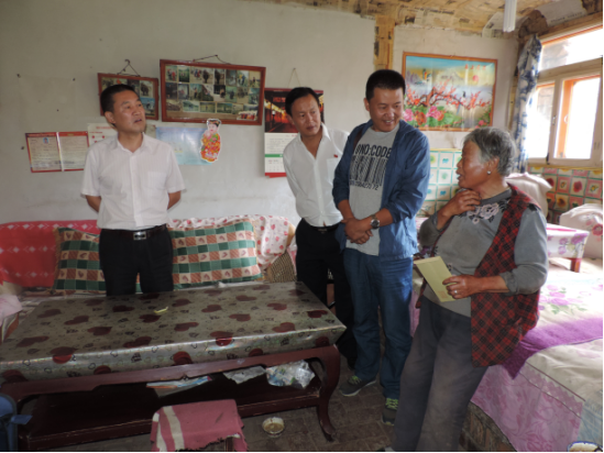 朝物開投公司副總經(jīng)理喇軍民、物產(chǎn)汽貿(mào)公司董事長(zhǎng)張建軍、機(jī)電市場(chǎng)公司市場(chǎng)部部長(zhǎng)王功明以"三幫一"的方式結(jié)對(duì)幫扶絕對(duì)困難戶楊生福。楊生福,男,藏族,61歲,家中三口人,本人肢體四級(jí)殘疾,妻子四級(jí)殘疾(羅鍋),兒子30歲,現(xiàn)安排在當(dāng)?shù)貜氖伦o(hù)林員工作,未結(jié)婚,住房為土木結(jié)構(gòu),此次結(jié)對(duì)幫扶為其送去了600元慰問(wèn)金。