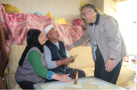 王玉輝書記一行在大通縣石山鄉(xiāng)黨委副書記胡懷強(qiáng)、集團(tuán)派駐第一書記張秉瑜的陪同下,首先來到兩戶重點(diǎn)幫扶對象的家中進(jìn)行幫扶慰問。貧困戶馬得倉患慢性腎炎和高血壓,其妻馬尕奴子患多種慢性病,年老體衰,沒有勞動能力,生活十分困難。貧困戶宗統(tǒng)林患嚴(yán)重腰間盤突出疾病,兒子白血病去世,給貧困的家庭背負(fù)著20萬左右的債務(wù)。王玉輝書記對這兩戶因病致困特困戶的生活情況非常關(guān)注,詳細(xì)地詢問了他們的家庭基本情況和面臨的困難,了解了集團(tuán)駐村扶貧工作干部開展扶貧工作的情況。親切的話語貼近了與貧困群眾的心,貧困戶們握著他的手嘮著家常,愉快地說起了現(xiàn)在的生產(chǎn)生活情況和對未來生產(chǎn)生活的想法憧憬,所到之處時(shí)時(shí)傳來歡聲笑語。