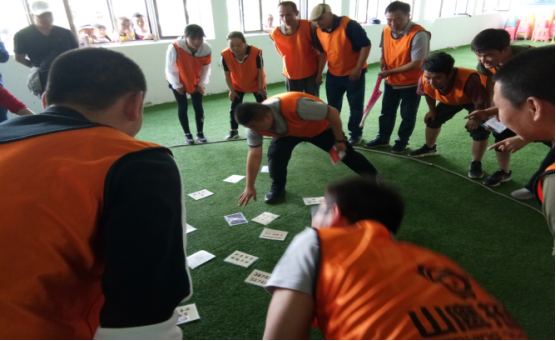 通過系列游戲?qū)胪卣估砟?,同時建立團隊、選舉隊長、編隊歌、取隊名、定隊訓(xùn)、繪隊旗、做團隊雕塑,做文化展示。隊員在精神整裝和團隊建立時充滿信心和激情的表現(xiàn),體現(xiàn)出青海物產(chǎn)汽貿(mào)團隊已整裝待發(fā)、破冰起航。