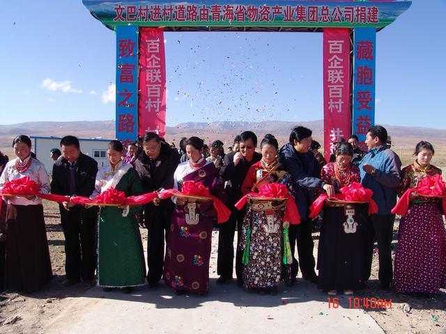 交接儀式上,集團(tuán)公司總經(jīng)理王玉輝、共和縣人大常委會(huì)主任尕瑪才讓為元者村黨員活動(dòng)室、科普文化室、醫(yī)療衛(wèi)生室揭牌之后,與黨委書記白家林、紀(jì)委書記王仁芬、共和縣委常委、組織部長官卻南見等領(lǐng)導(dǎo)為共和縣黑馬河鄉(xiāng)文巴村進(jìn)村道路通車剪彩。集團(tuán)公司黨委書記白家林代表省物產(chǎn)集團(tuán)向共和縣江西溝鄉(xiāng)提前捐送元者村游牧民定居點(diǎn)工程配套資金100,000元。集團(tuán)公司紀(jì)委書記王仁芬、共和縣委常委、組織部長官卻南見、江西溝鄉(xiāng)元者村村長、文巴村村長分別代表捐建方、受捐方致辭發(fā)言。至此,青海物產(chǎn)集團(tuán)在"百企聯(lián)百村"活動(dòng)中擬投入的1,455,500元,已到位1,255,500元。剩余的200,000元游牧民定居點(diǎn)工程建設(shè)項(xiàng)目捐款將根據(jù)工程進(jìn)度分期轉(zhuǎn)付。