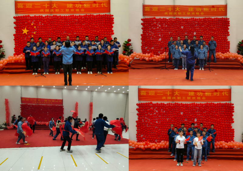 公司雖然處于疫情封閉管理的狀態(tài),但絲毫沒有影響干部職工踴躍參與的熱情,公司各單位積極報名、組織排練,為晚會順利召開奠定了堅實的基礎(chǔ)。同時在集團(tuán)工會等多方協(xié)調(diào)幫助下購買了晚會道具。值得一提的是,干部職工用600余個紅色氣球鋪設(shè)了紅色國旗背景墻,用心表白祖國。