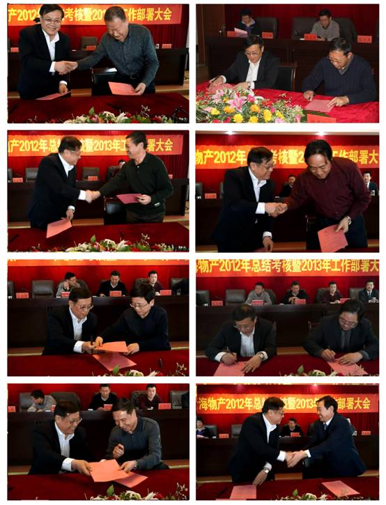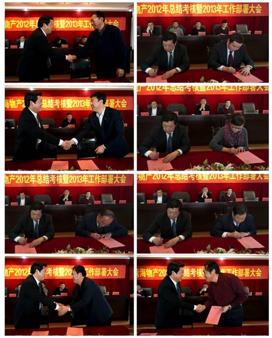 會上,由集團總經(jīng)理王玉輝與所屬各公司、集團各部簽訂2013年經(jīng)營業(yè)績目標責任書,由集團黨委書記白家林與所屬黨委(總支)、直屬黨支部簽訂黨建工作目標管理責任書、與所屬各公司法定代表人簽訂黨風廉政建設(shè)責任書。